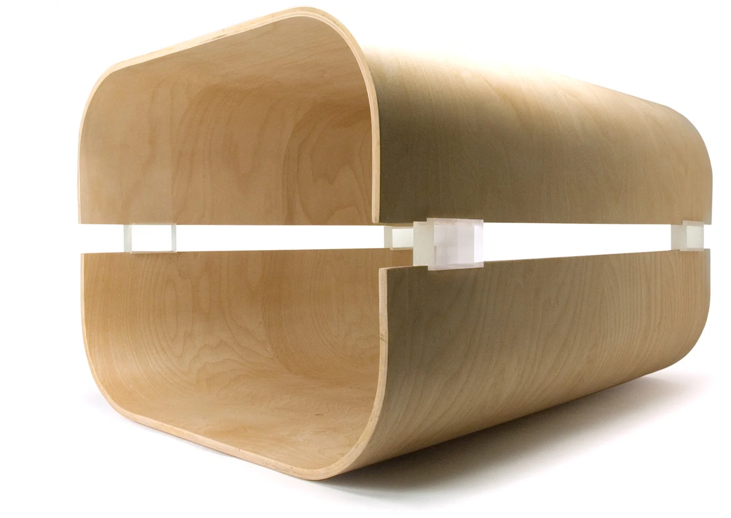 this coffee table made from vacuum bent birch wood and acrylic was my first experiment with furniture design.
